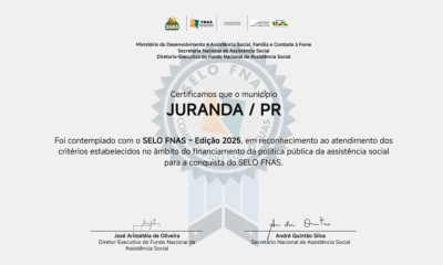 O município de Juranda está entre as cidades brasileiras que conquistaram o Selo FNAS 2025, certificação concedida pelo Fundo Nacional de Assistência Social (FNAS) que reconhece...